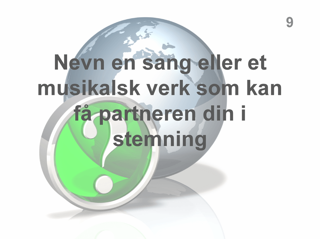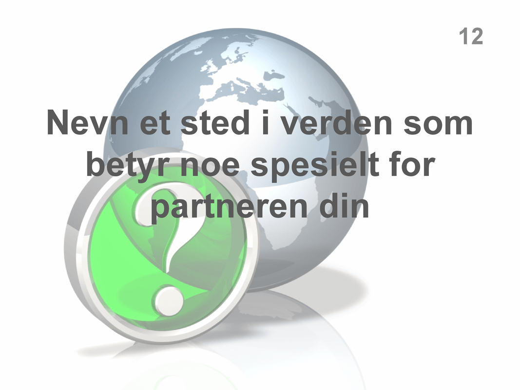 Poenget med øvelsen er ikke å gjette riktig eller galt, eller å bli fort ferdig, men å utvide kjennskapen til hverandre. La gjerne den ene assosiasjonen ta den andre – slik vi kan gjøre når vi er forelsket ...